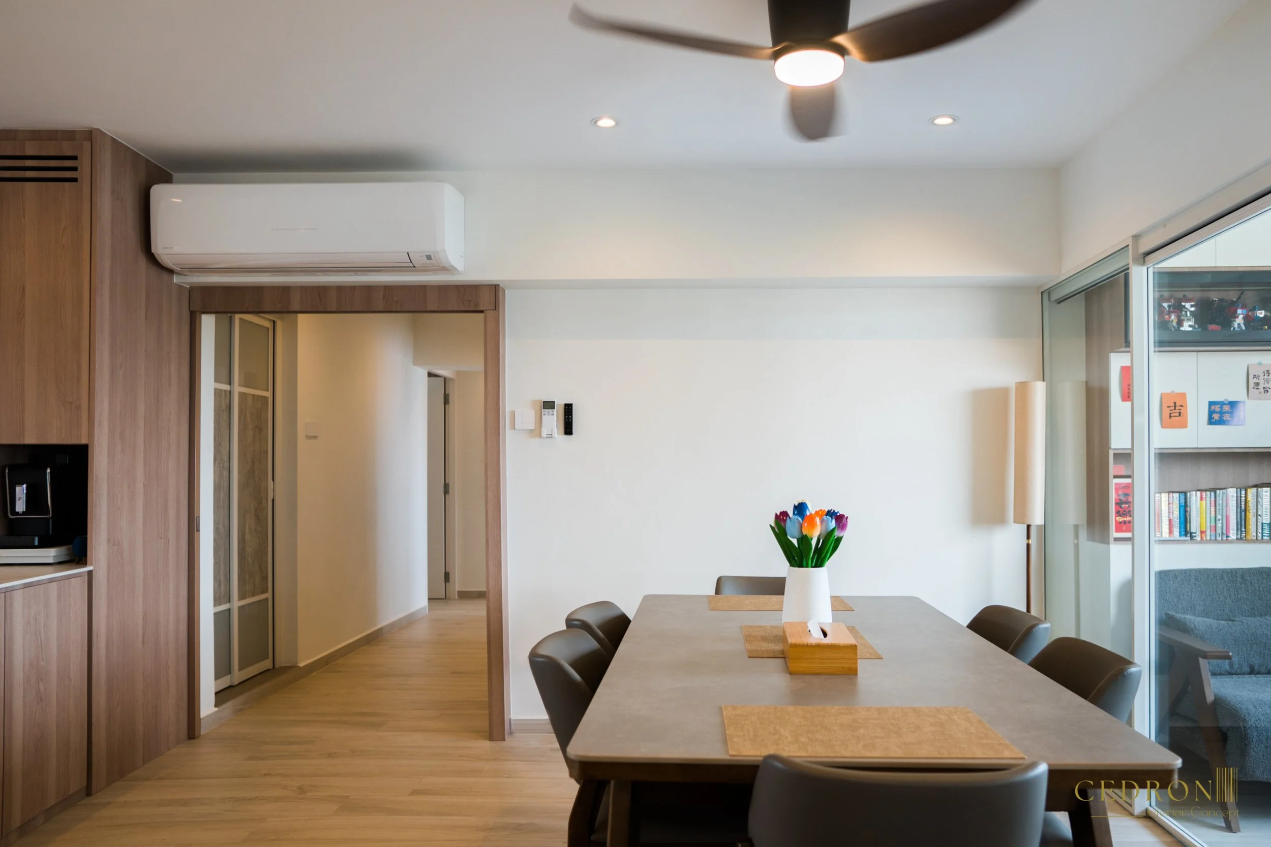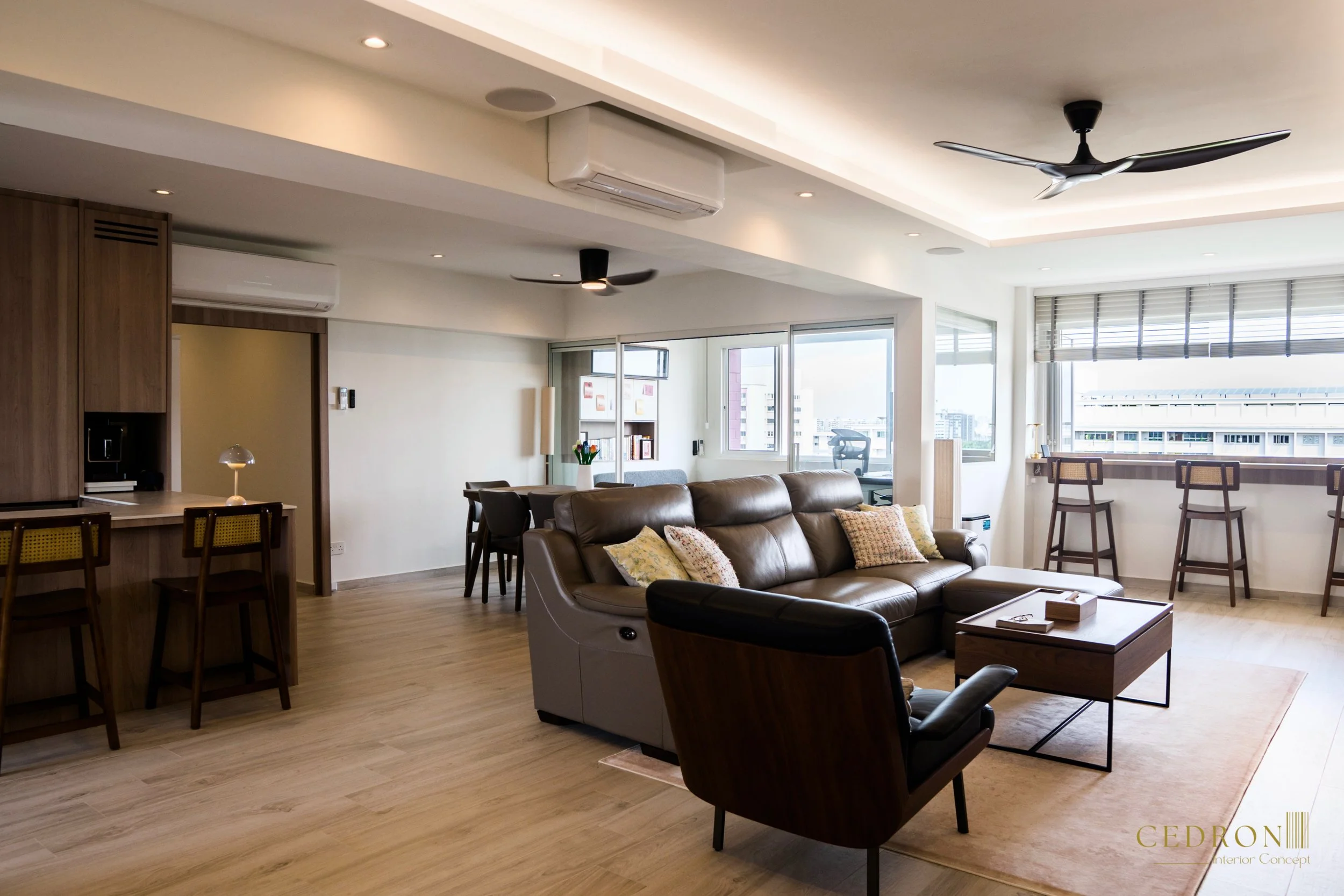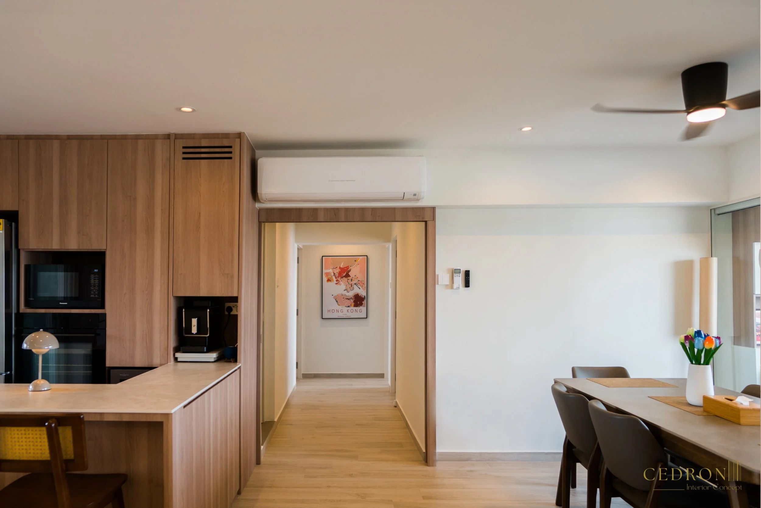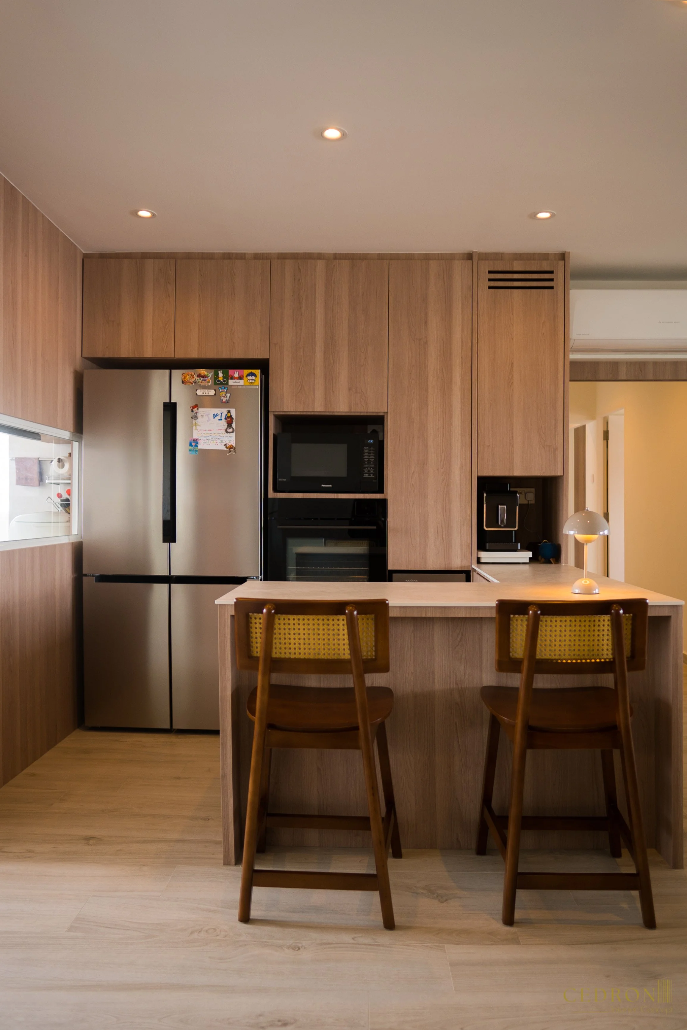 This space is designed as the heart of the home, where warm wood tones, seamless cabinetry and refined details come together to create an atmosphere that is both inviting and highly functional. It’s a setting that encourages connection while maintaining a timeless modern aesthetic.