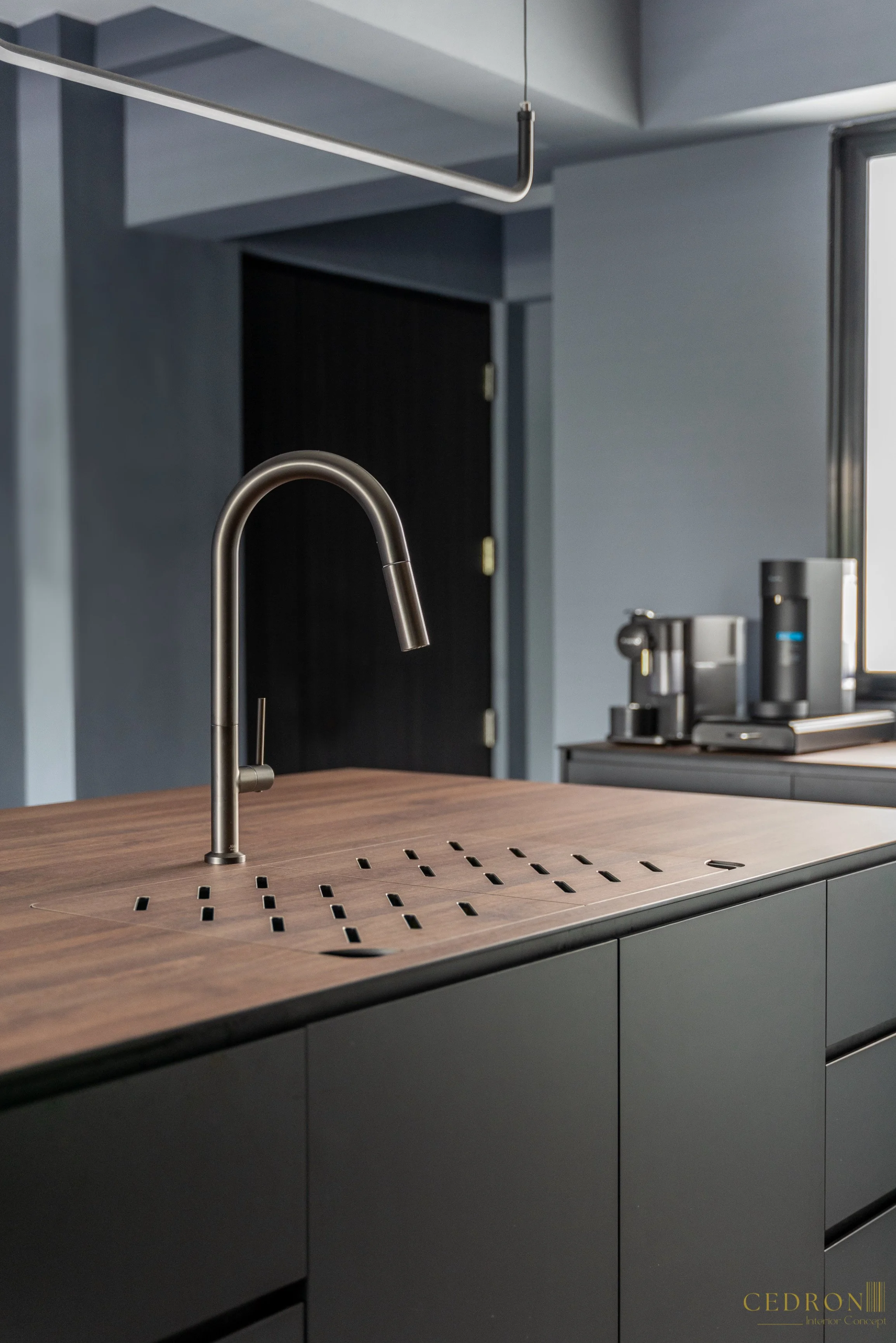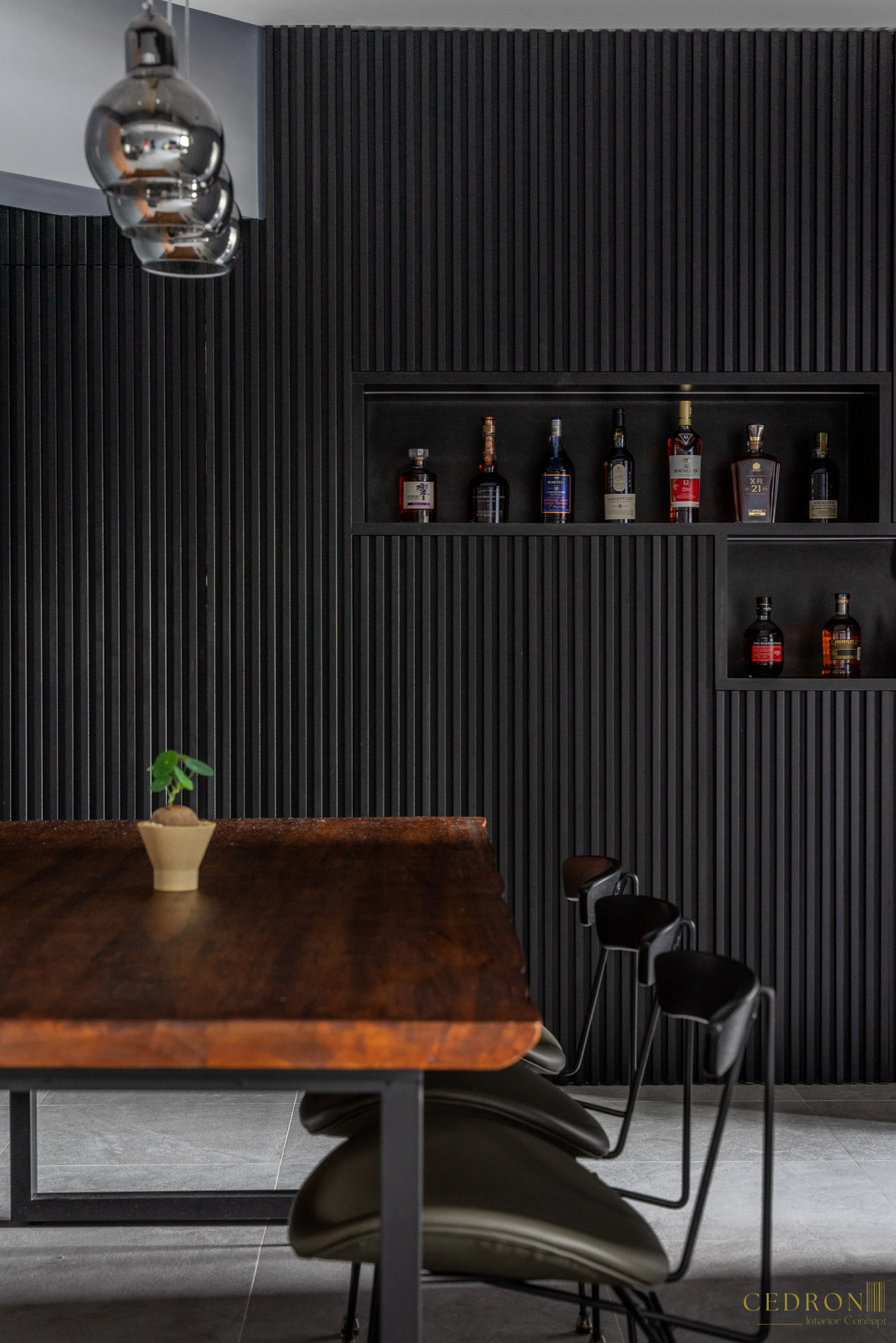Simplicity finds depth in dark tones. Clean lines, subtle accents, and muted lighting combine to create a space that feels timeless yet intimate. This is modern elegance reimagined, where every shadow, every texture and every detail is intentional.