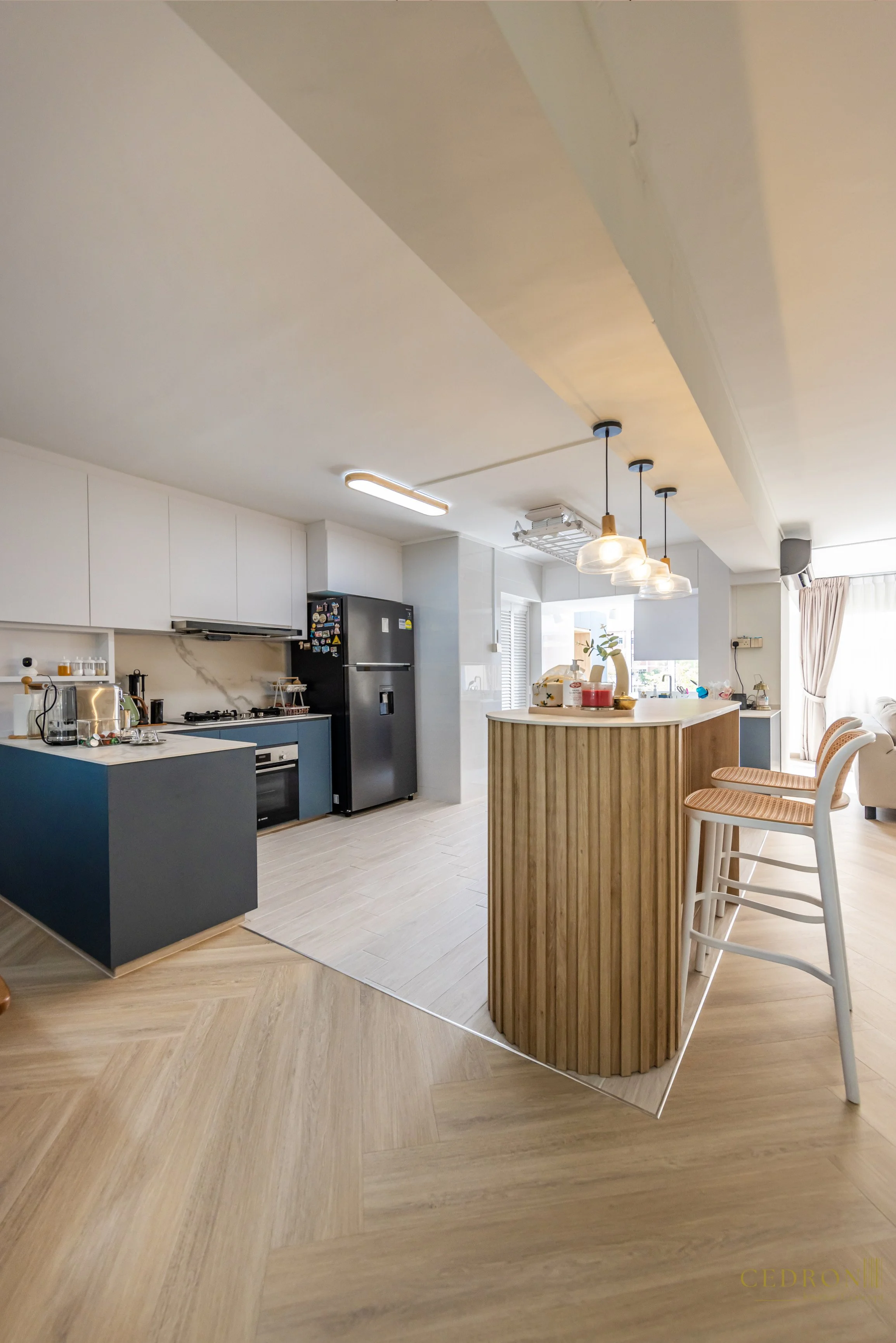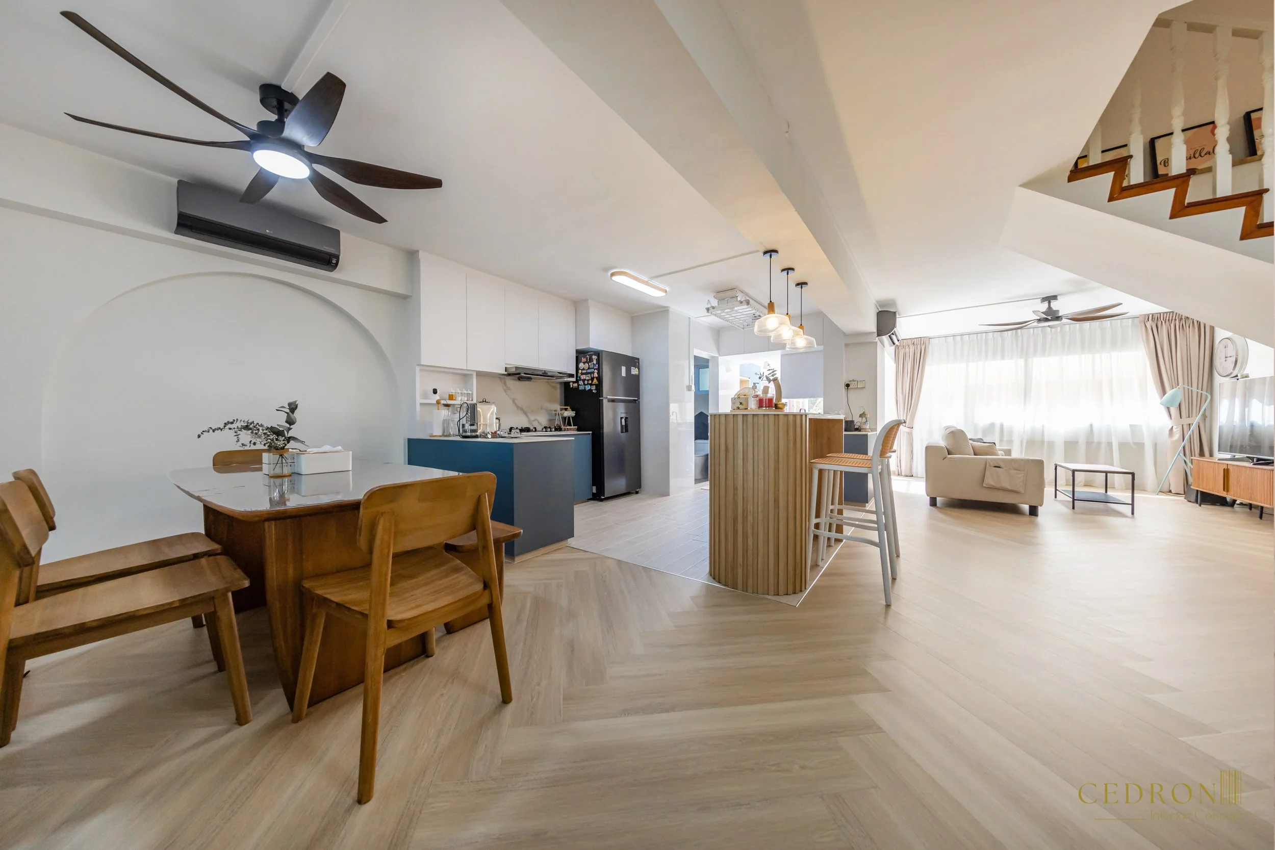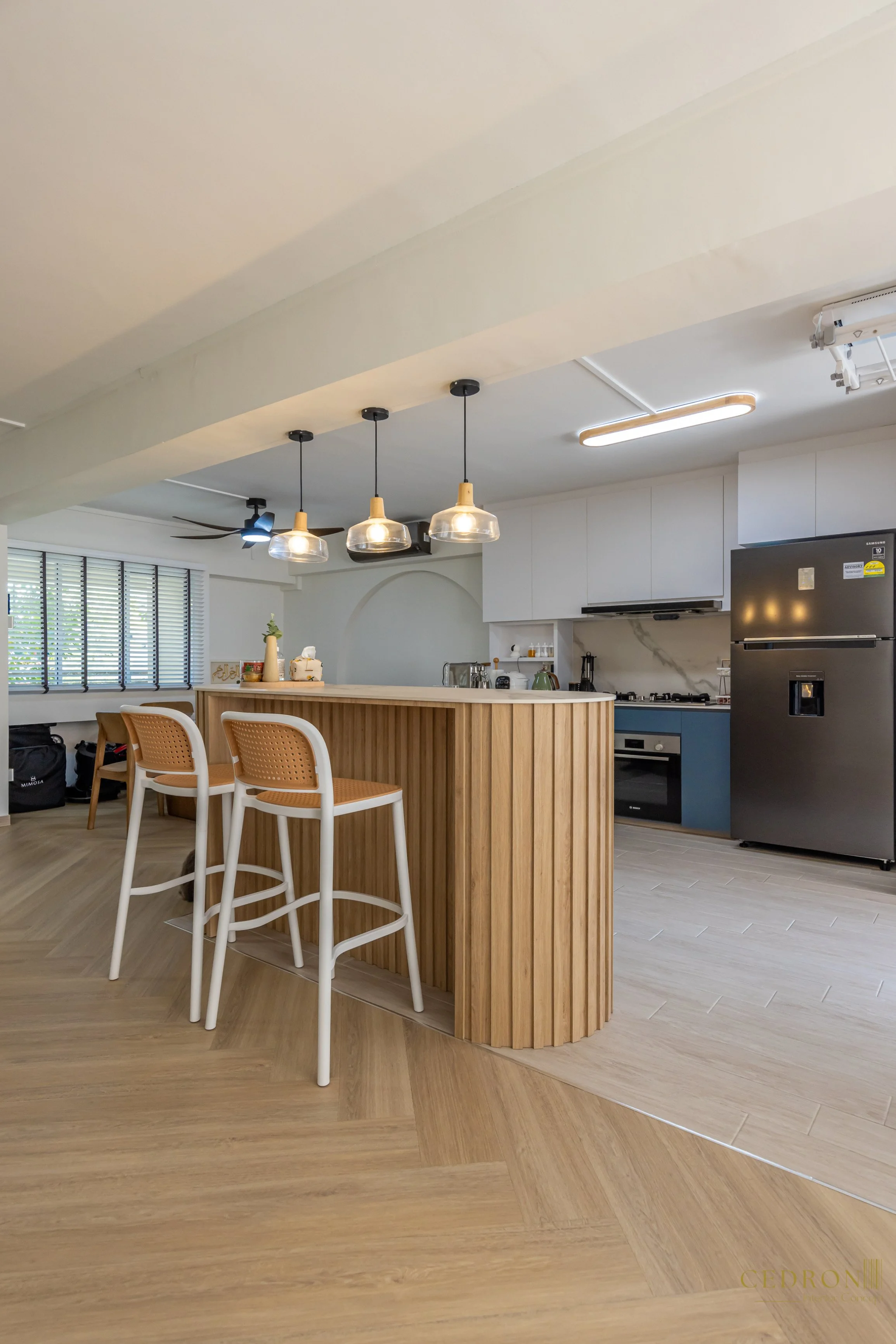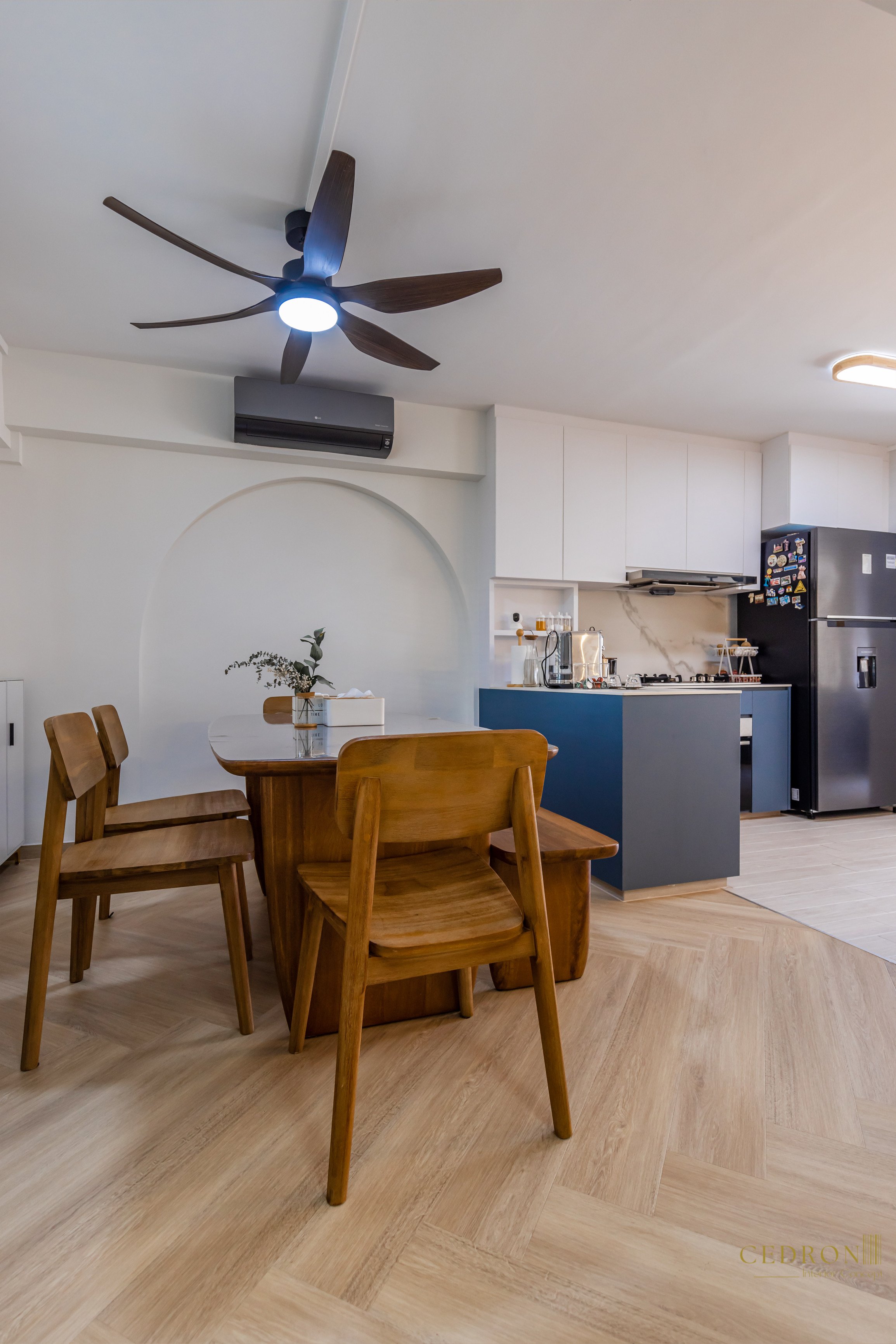 Designed for how people actually live, not just how it photographs. The flow between kitchen, dining, and living feels seamless, every zone defined but connected. Light wood flooring carries warmth through the space, while simple details keep it grounded.